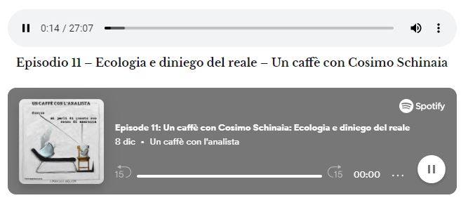 E' possibile ascoltare la mia intervista nella sezione podcast dell Centro psiconalitico di Firenze ( https://www.spi-firenze.it/un-caffe-con-lanalista/)